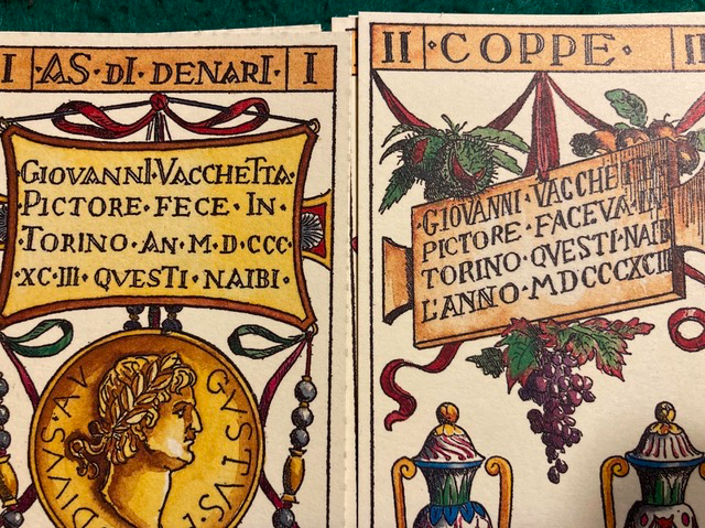 The Tarot deck of Giovanni Vacchetta, or, as he called them, i Naibi, is a quiet enigma of a deck. It is one of the few pre-RWS Tarots whose pip cards are illustrated, for example. The scenes are sometimes dismissed as merely ornamental with no divinatory or esoteric meaning, but at the same time the deck bears some indications that Vacchetta was at least aware of the emerging occult traditions surrounding the deck.